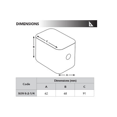 | Dimensions (mm) | A: 62, B: 68, C: 91 |